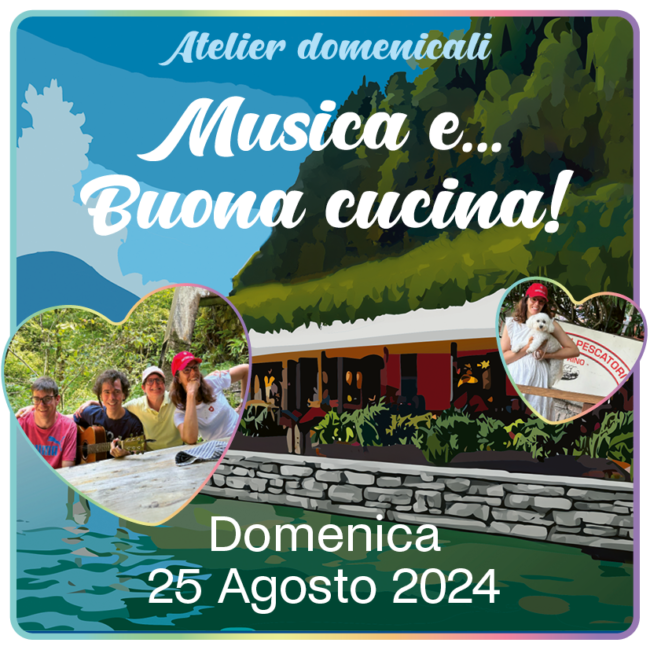 Musica e… Buona cucina! Atelier domenicali Cari familiari, soci e amici, vi proponiamo un Atelier domenicale sul nostro splendido lago all’insegna della musica con Alex Gasparotto e della buona cucina del Grotto dei Pescatori che raggiungeremo in motoscafo con Sergio! Domenica 25 Agosto 2024 Per informazioni e iscrizioni info@autismo.ch oppure al numero 091 857 99…