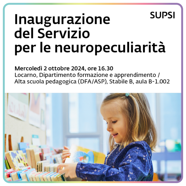 Inaugurazione del Servizio per le neuropeculiarità Care famiglie, soci, amici di autismo svizzera, la Biblioteca SUPSI del Dipartimento formazione e apprendimento / Alta scuola pedagogica (DFA/ASP) di Locarno inaugura un nuovo servizio dedicato alle neuropeculiarità, rispondendo così ad un’esigenza inclusiva che valorizzi le diversità. Il nuovo Servizio rappresenta un fondamentale progresso nell’integrazione di risorse e…